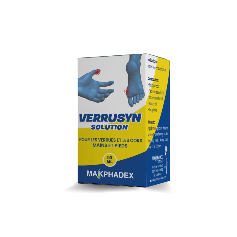 Verrusyn est un dispositif médical spécialement conçu pour aider à éliminer les verrues communes, verrues plantaires et cors. Sa formule associe l’action kératolytique de l’acide salicylique à des huiles essentielles naturelles de Tea Tree et de Clou de Girofle, reconnues pour leurs propriétés purifiantes.